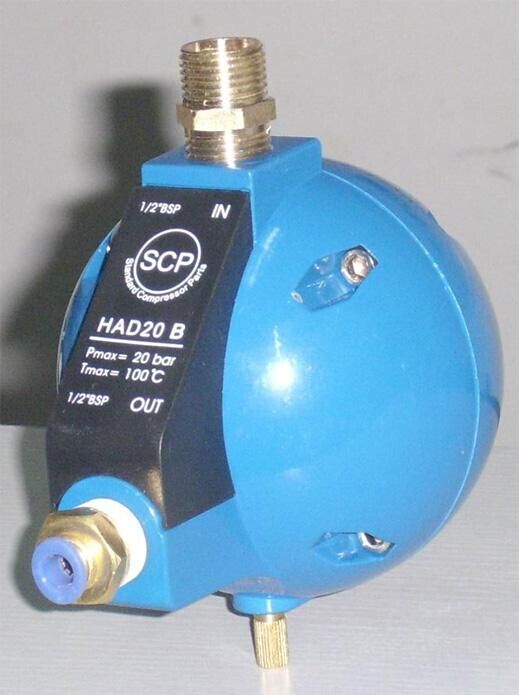 | 水在排水器里累積,達(dá)到一定水位之后,浮力大于空氣壓力,空氣瓶上浮,排水口打開,水在氣壓作用下排出,同時(shí)浮力減小,空氣瓶下降堵住排水口。